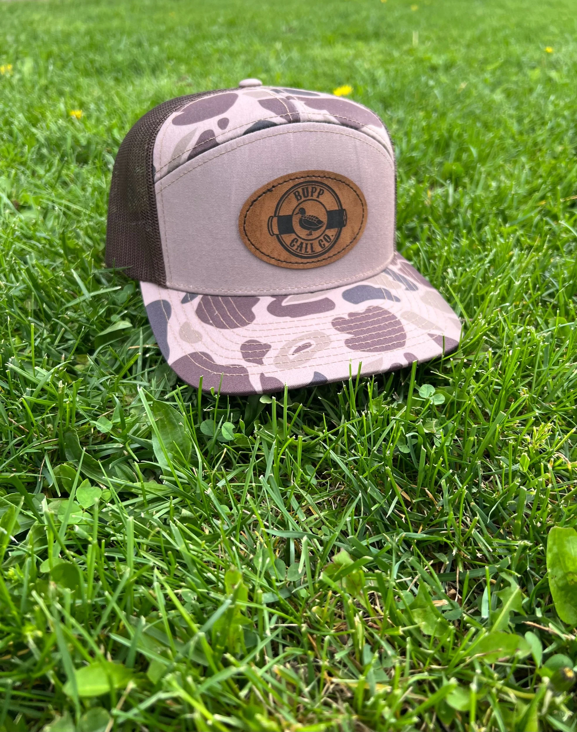 Show your passion for the outdoors with the Bupp Call Company logo proudly displayed on this premium Richardson 7-panel hat. Featuring a rugged duck camo pattern, this hat is built for those who live for early mornings in the blind and long days in the field. The structured, high-profile 7-panel design offers a bold, modern look, while the adjustable snapback ensures a perfect fit every time.